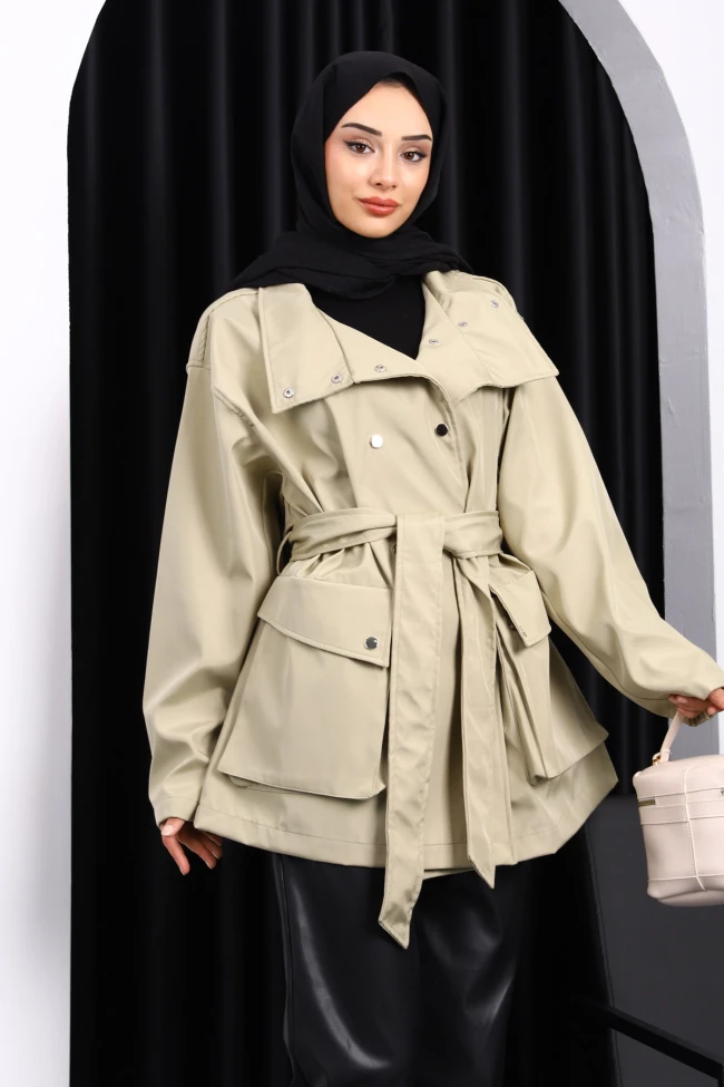 * Ürün Detay : Ürünümüz Bondit  Kumaştan Üretilmiştir. Ön kısmı çıt çıt düğme detaylıdır. Yan kısımları cepli olup, bel kısmı kuşaklıdır.