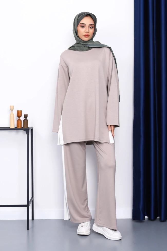 Yağ Yeşili Renk Bloklu Modal Tunik Pantolonlu Takım Pudra Renk Bloklu Modal Tunik Pantolonlu Takım Kahverengi Renk Bloklu Modal Tunik Pantolonlu Takım Haki Renk Bloklu Modal Tunik Pantolonlu Takım Bebe Mavi Renk Bloklu Modal Tunik Pantolonlu Takım