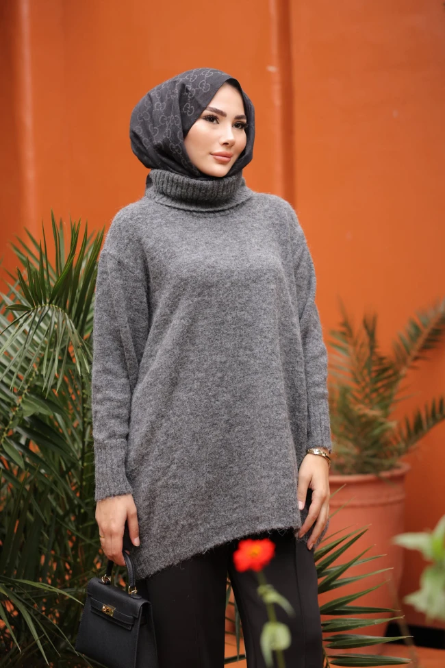 Krem Balıkçı Yaka Salaş Triko Tunik Lacivert Balıkçı Yaka Salaş Triko Tunik Gri Balıkçı Yaka Salaş Triko Tunik