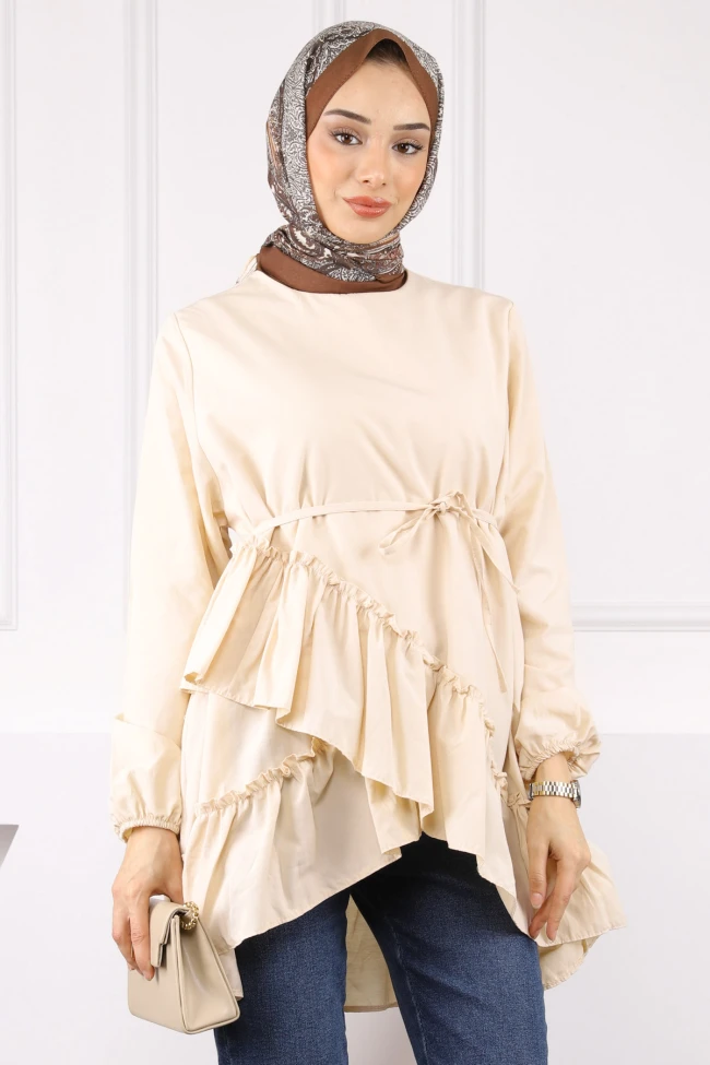 * Ürün Detay : Ürünümüz Terikoton kumaştan üretilmiştir. Bel kısmı kuşaklıdır. Etek uç kısımları fırfır detaylıdır.