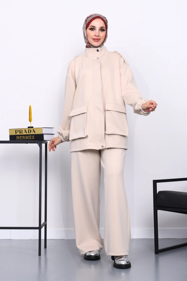 * Ürün Detay : Ürünümüz  Scuba kumaştan üretilmiştir. Ceket ile Pantolon ikili takım şeklindedir. Ceket ön kısmı fermuarlı ve cep detaylıdır. Pantolon bel kısmı lastiklidir.