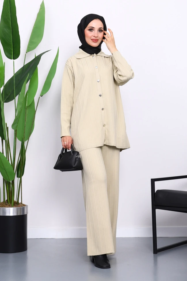 Saks Mavi Gömlek Yaka Düğmeli Pantolonlu Triko Takım Siyah Gömlek Yaka Düğmeli Pantolonlu Triko Takım Yağ Yeşili Gömlek Yaka Düğmeli Pantolonlu Triko Takım Füme Gömlek Yaka Düğmeli Pantolonlu Triko Takım Krem Gömlek Yaka Düğmeli Pantolonlu Triko Takım