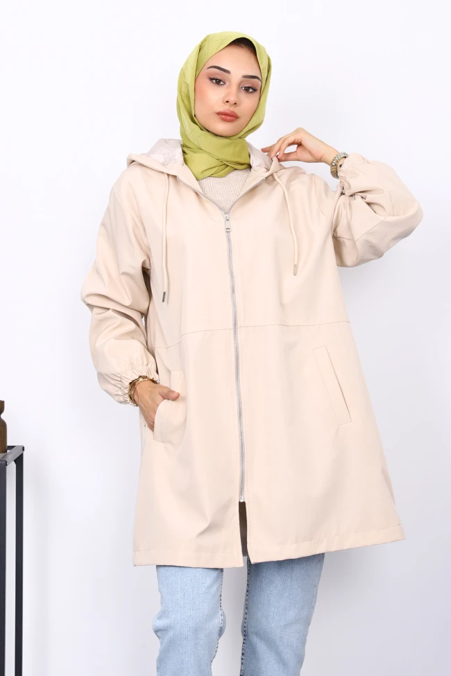 Haki Kapüşonlu Arkası Nakışlı Trençkot Lacivert Kapüşonlu Arkası Nakışlı Trençkot