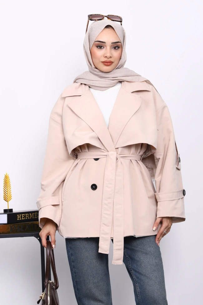Siyah Kravuze Yaka Düğmeli Kısa Trençkot Haki Kravuze Yaka Düğmeli Kısa Trençkot Kahverengi Kravuze Yaka Düğmeli Kısa Trençkot Lacivert Kravuze Yaka Düğmeli Kısa Trençkot