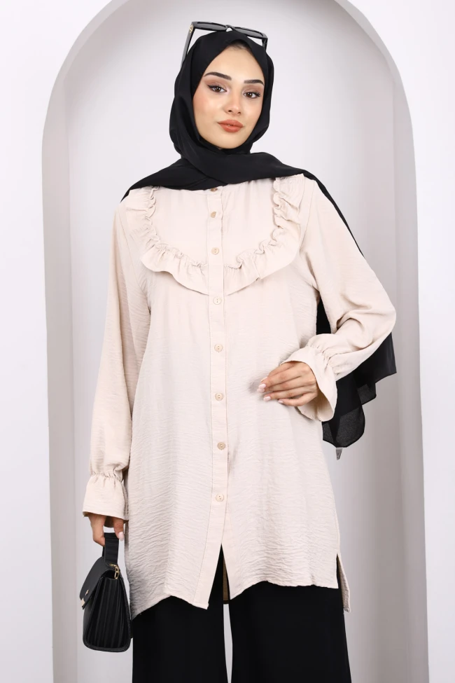 Pembe Önü Fırfırlı Ayrobin Tunik Ekru Önü Fırfırlı Ayrobin Tunik