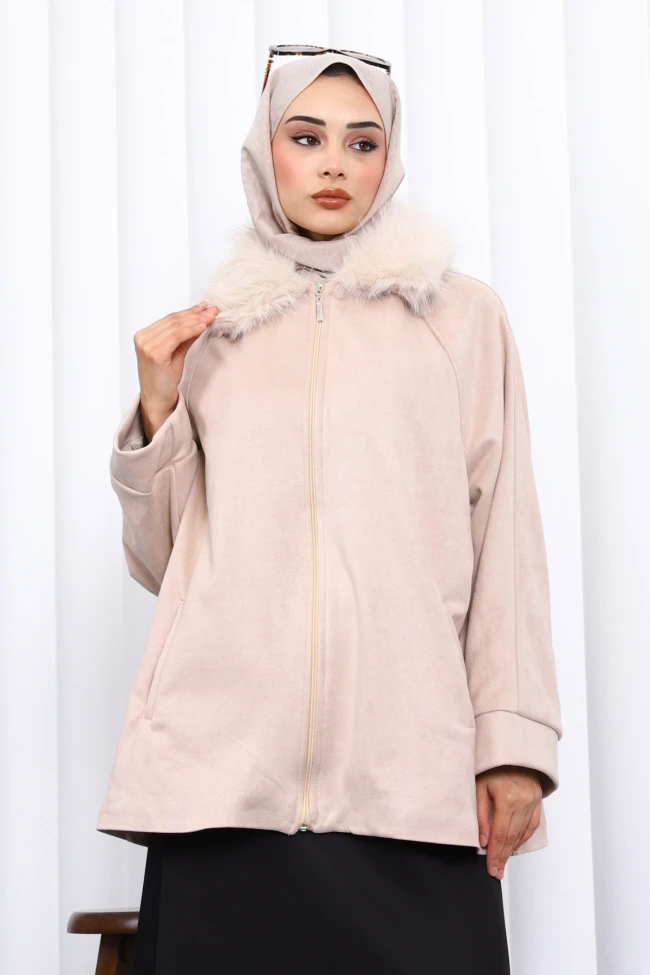 * Ürün Detay : Ürünümüz Süet Kumaştan Üretilmiştir. Ön kısmı fermuarlı ve yaka kısmı kürk detaylıdır.