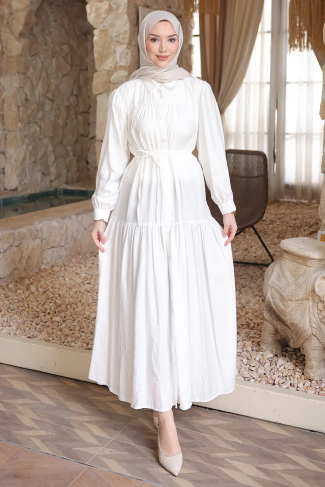 * Ürün Detay : Elbise, hem zarafeti hem de günlük kullanım rahatlığını bir araya getiren çok şık bir tasarım.Belden kuşaklı olması, elbiseye form vererek daha feminen bir hava katmış. Etek kısmındaki katlı kesim ise tasarıma hareket ve hacim kazandırıyor.Gömlek yaka detayı elbiseye ciddi ve düzenli bir görünüm verirken, balon kollar modern bir dokunuş sağlıyor.