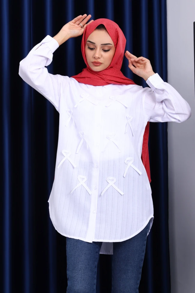 * Ürün Detay :  Ürünümüz Bürümcük kumaştan üretilmiştir. Tunik ön kısmı düğmeli olup, mink fiyonk detayları yer almaktadır.