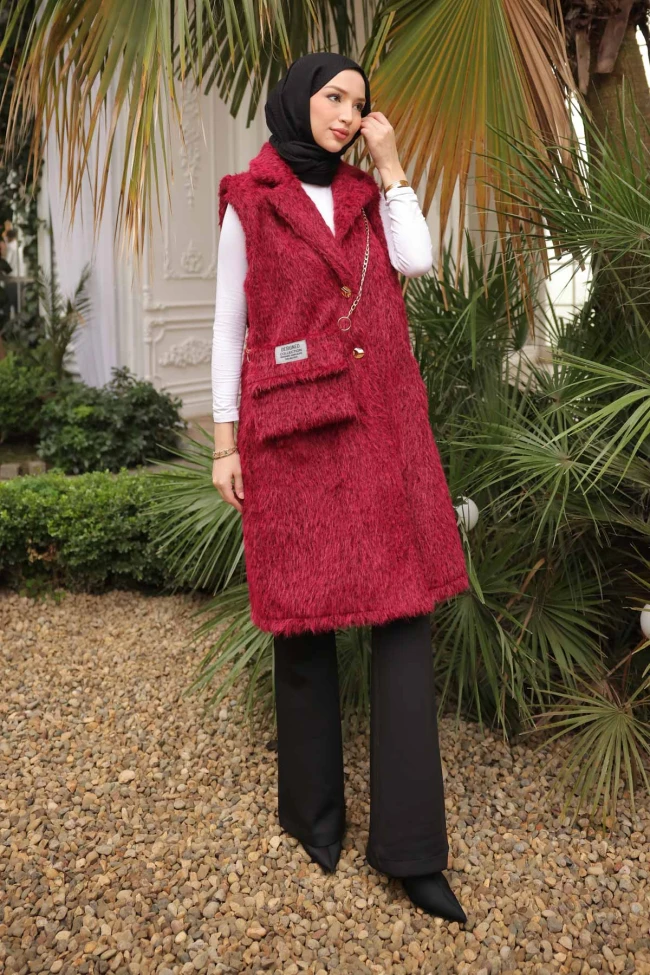 Kahverengi Çanta Hadiyeli Angora Pelüş Kürk Yelek Mürdüm Çanta Detaylı Angora Yelek Füme Çanta Hadiyeli Angora Pelüş Kürk Yelek
