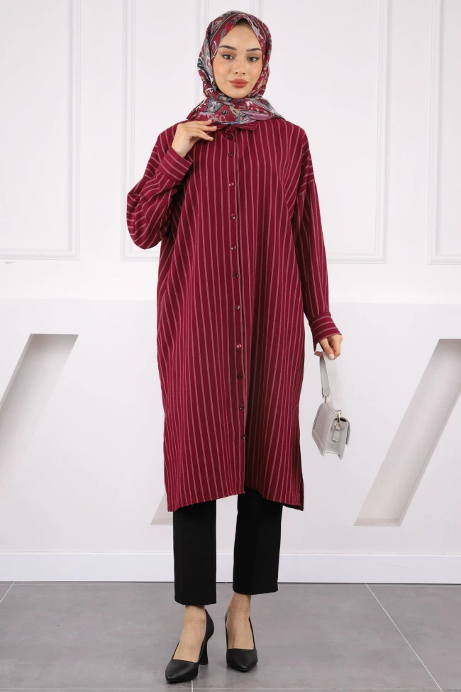 Pembe Çizgili Yırtmaçlı Tunik Bej Çizgili Yırtmaçlı Tunik Siyah Çizgili Yırtmaçlı Tunik