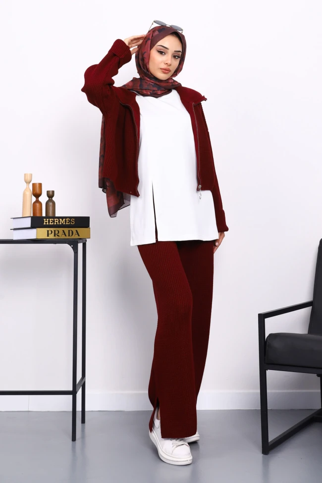 Taş Fermuarlı Üçlü Triko Takım Lacivert Fermuarlı Üçlü Triko Takım Siyah Fermuarlı Üçlü Triko Takım Füme Fermuarlı Üçlü Triko Takım Kahverengi Fermuarlı Üçlü Triko Takım