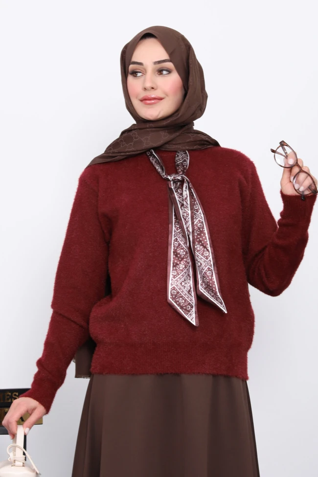Kahverengi Fular Detaylı Angora Yumoş Kazak Krem Fular Detaylı Angora Yumoş Kazak Siyah Fular Detaylı Angora Yumoş Kazak