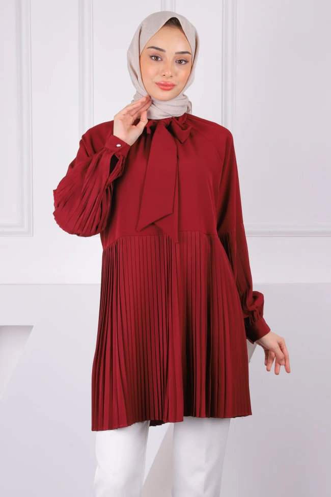 * Ürün Detay : Ürünümüz Modal Kumaştan Üretilmiştir. Modelimizin etek uç kısımları ve kol kısımları pilise detaylıdır.