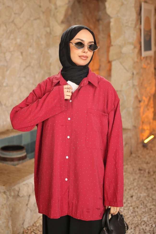* Ürün Detay : Gömlek, özellikle modest giyim tarzını benimseyenler için hem şık hem de oldukça işlevsel bir parça.Kumaş üzerindeki minik taş işlemeleri ışıltılar, düz bir gömleği daha özel bir butik parçasına dönüştürmüş. Oversize ve uzun formda olması, konforu ön plana çıkarırken vücut hatlarını belli etmeyen modern bir silüet oluşturuyor. Düşük omuz detayı ise salaş şıklığı destekliyor.Klasik gömlek yakası ve beyaz kontrast düğmeler, ürünün ceket gibi önü açık şekilde kullanılmasına da olanak tanıyor.