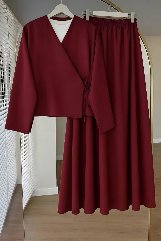 Vizon Yandan Bağlamalı Dabıl Kimono Etekli Takım Siyah Yandan Bağlamalı Dabıl Kimono Etekli Takım Kahverengi Yandan Bağlamalı Dabıl Kimono Etekli Takım Lacivert Yandan Bağlamalı Dabıl Kimono Etekli Takım
