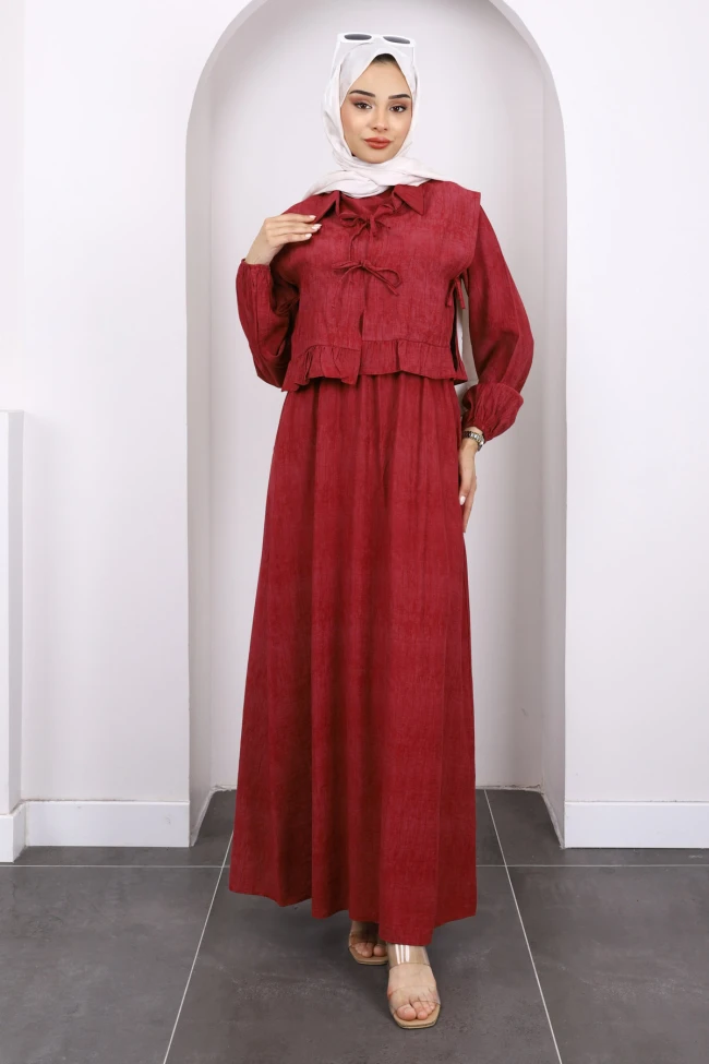 * Ürün Detay : Ürünümüz Keten Kumaştan Üretilmiştir. Yelek ile Elbise ikili takım şeklindedir. Yelek ön kısmı bağlamalıdır.