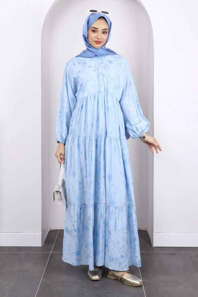 Siyah Desenli Yarım Düğmeli Kol Lastikli Elbise Pembe Desenli Yarım Düğmeli Kol Lastikli Elbise Sarı Desenli Yarım Düğmeli Kol Lastikli Elbise