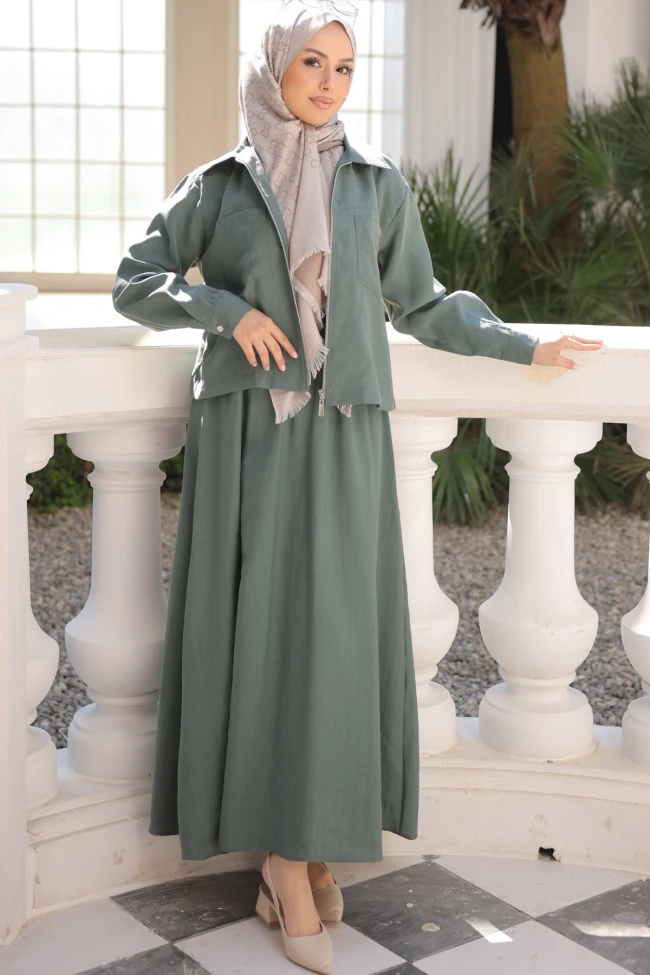 * Ürün Detay : Minimalist tasarımıyla dikkat çeken fermuarlı ceket ve kloş etek takımımız stoklarda! İster spor ayakkabılarla günlük, ister topuklularla şık bir görünüm yakalayın. Etek bel lastiklidir.