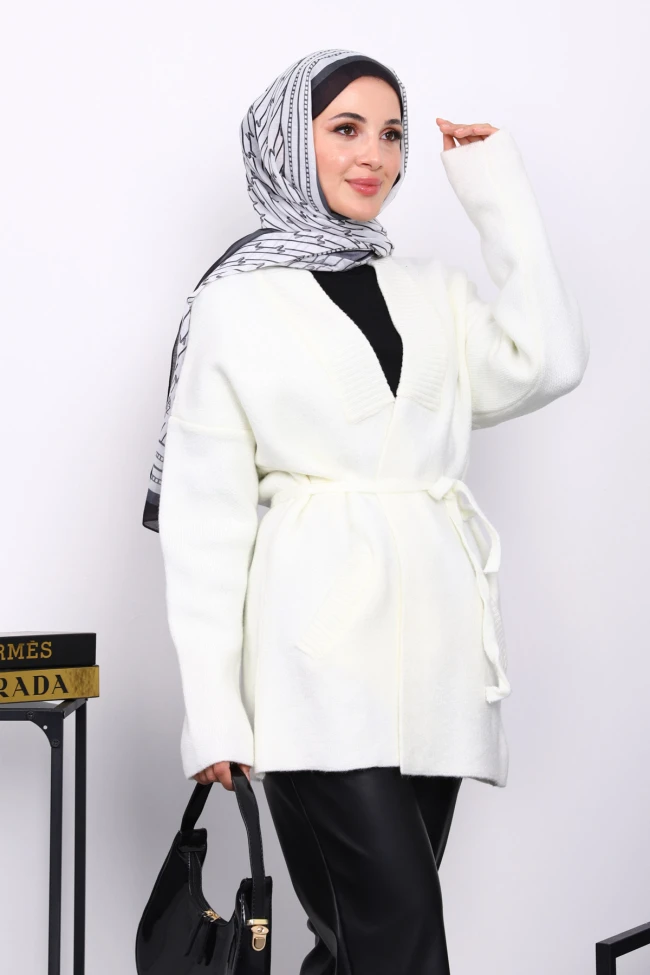 Kahverengi Bel Kuşaklı Cepli Triko Hırka Lacivert Bel Kuşaklı Cepli Triko Hırka Siyah Bel Kuşaklı Cepli Triko Hırka