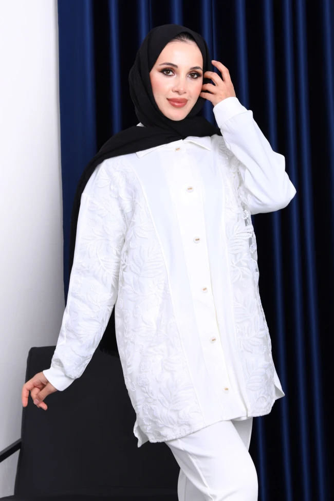 * Ürün Detay : Ürünümüz Modal kumaştan üretilmiştir. Tunik ile Pantolon ikili takım şeklindedir. Tunik ön kısmı düğmeli olup, güpür ve pul işlemeler yer almaktadır. Pantolon bel kısmı lastiklidir.