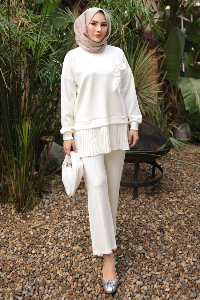 * Ürün Detay : Zarif bir görünüme sahip olan takımımız sade şıklığı tarz haline getiren hanımlar sizler için geldi. Yeni sezona uygun modal kumaştan üretilmiştir. Tunik ve pantolon olarak ikili takımdır. Pantolon ceplidir. Tunik etek ucu pile detayı ile hareketlendirilmiştir.