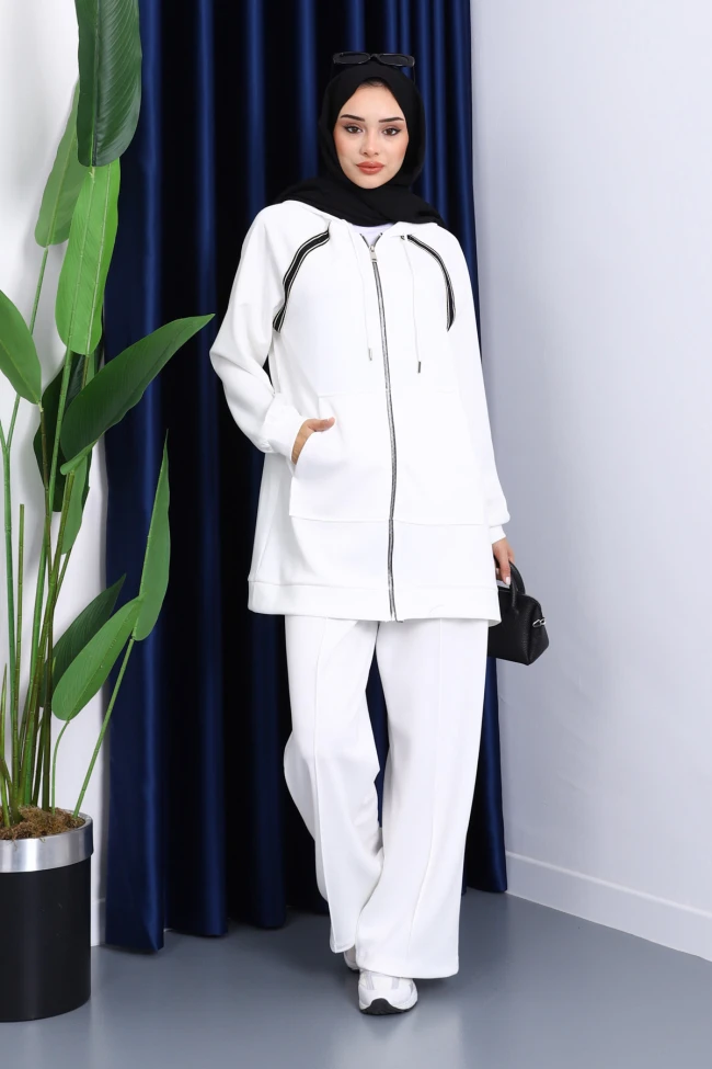 * Ürün Detay : Ürünümüz Modal Kumaştan Üretilmiştir. Tunik ile Pantolon ikili takım şeklindedir. Tunik ön kısmı fermuarlı ve kapüşonlu olarak tasarlanmıştır. Pantolon bel kısmı lastiklidir.
