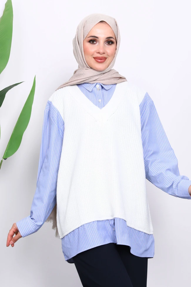 * Ürün Detay : Ürünümüz Triko Garnili Kumaştan Üretilmiştir. Triko yelek gömlek ile bütün şeklindedir.