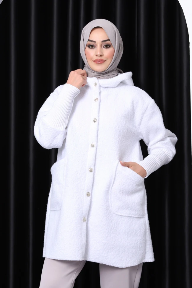 * Ürün Detay : Ürünümüz yeni sezona uygun Buklet kumaştan üretilmiştir. Ön kısmı düğmeli olup, yan kısımları ceplidir. Kapüşonlu olarak tasarlanmıştır.