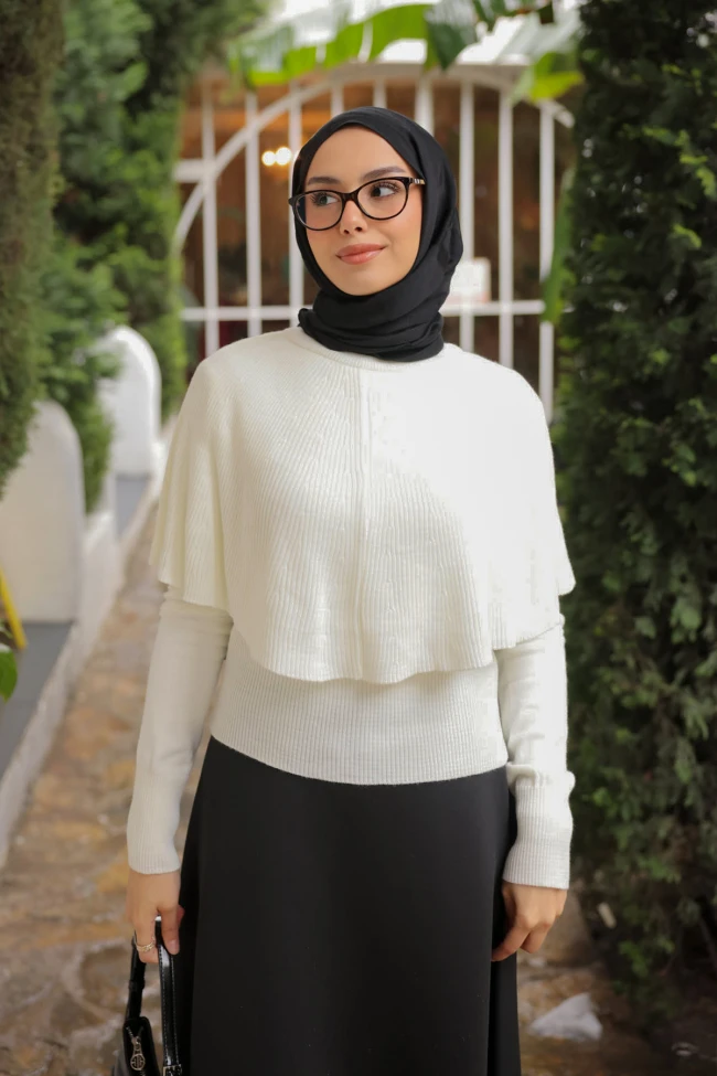 Siyah Pelerin Detaylı Fitilli Triko Kazak Kahverengi Pelerin Detaylı Fitilli Triko Kazak Lacivert Pelerin Detaylı Fitilli Triko Kazak Bordo Pelerin Detaylı Fitilli Triko Kazak