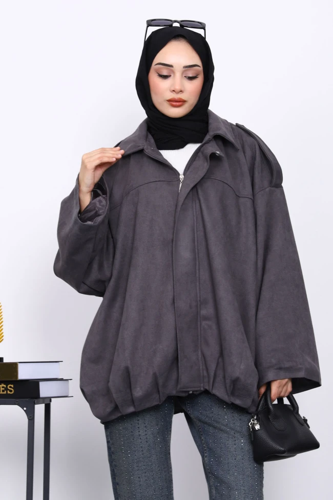 Taş Eteği Pileli Oversize Süet Ceket Lacivert Eteği Pileli Oversize Süet Ceket Siyah Eteği Pileli Oversize Süet Ceket