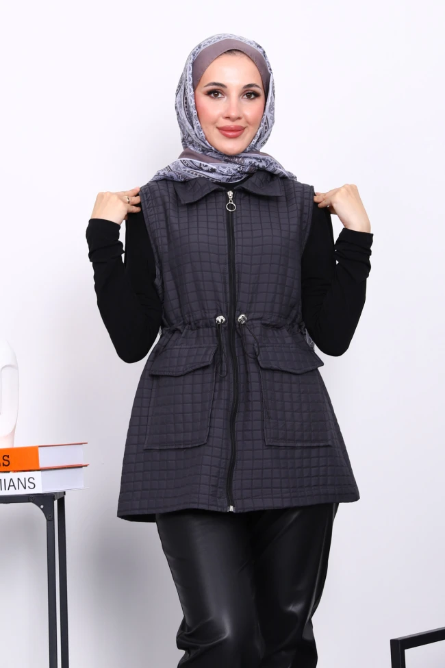 Siyah Fermuarlı Kapitone Yelek Taş Fermuarlı Kapitone Yelek Kahverengi Fermuarlı Kapitone Yelek Mürdüm Fermuarlı Kapitone Yelek