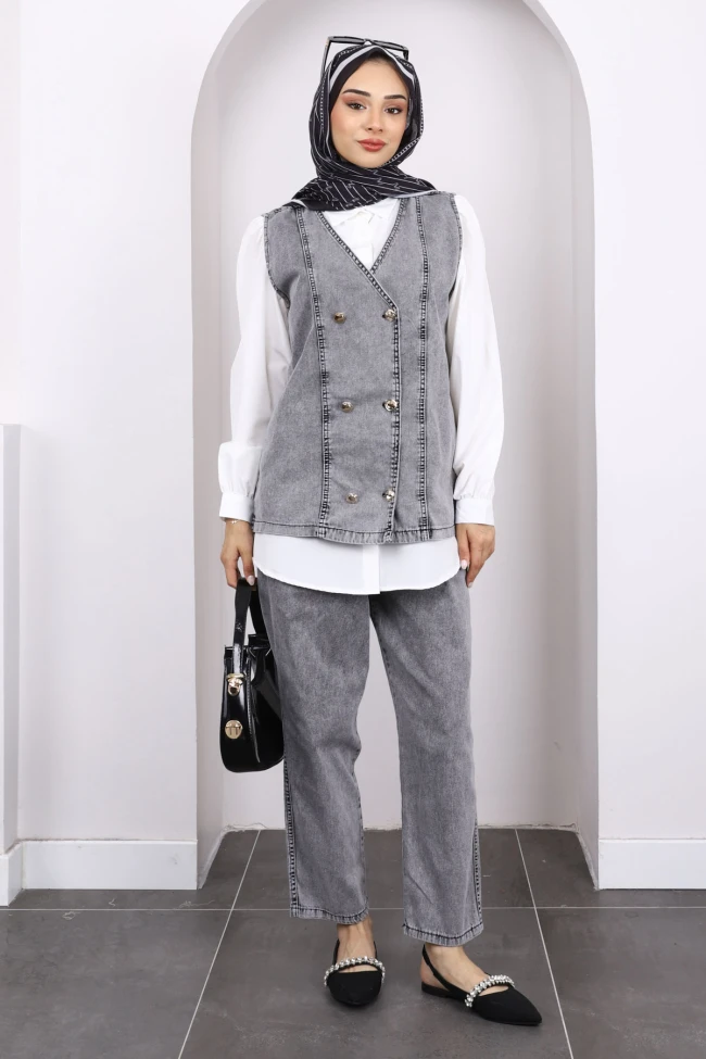 * Ürün Detay : Yeni sezona uygun Yumuşak Kot / Terikoton Kumaştan üretilmiştir. Yelek, Gömlek, Pantolon 3'lü takım şeklindedir. Pantolon bel kısmı lastiklidir. Yelek ön kısmı düğmelidir.