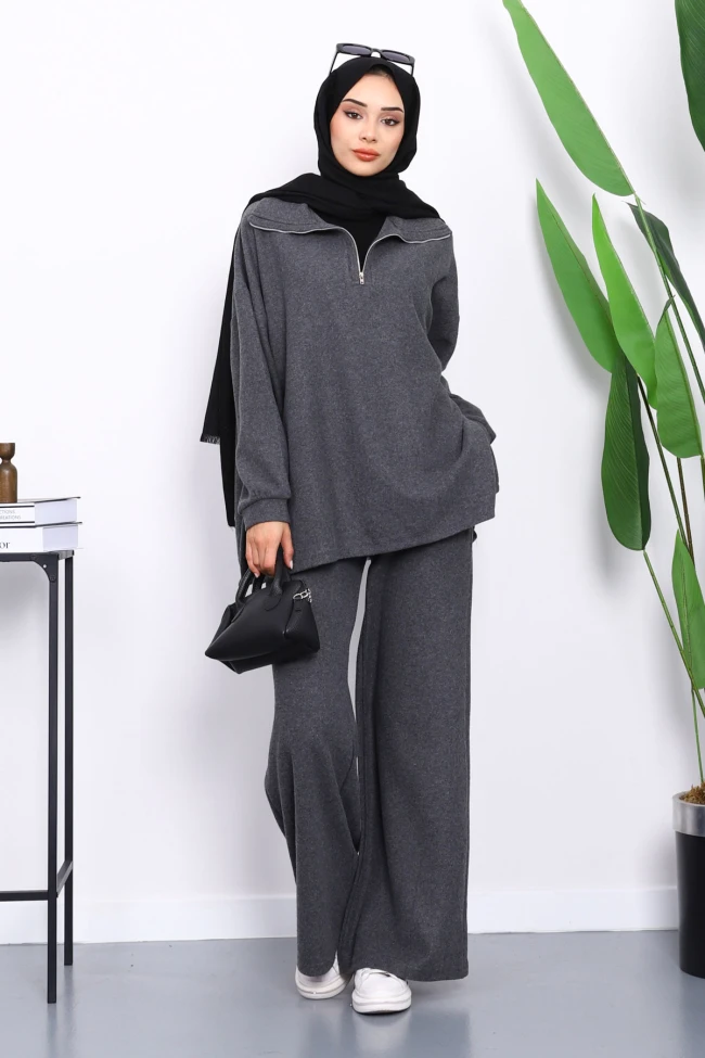 Pembe Yaka Fermuarlı Tunik Pantolonlu Fitilli Takım Kahverengi Yaka Fermuarlı Tunik Pantolonlu Fitilli Takım Lacivert Yaka Fermuarlı Tunik Pantolonlu Fitilli Takım
