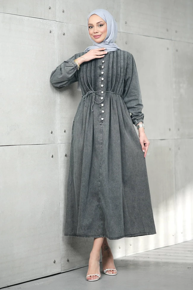 * Ürün Detay : Elbise, klasiği romantik detaylarla buluşturan oldukça ferah ve feminen bir parça. Kot kumaşının spor havasını, işçilikli detaylarla şık bir seviyeye taşımış.Göğüs kısmındaki dikey pili detayları elbiseye hacim ve zenginlik katıyor. Bu dokunuş, düz bir denim elbiseyi özel bir tasarım haline getirmiş.Kendi kumaşından ince kuşak, bel hattını belirginleştirerek daha dengeli bir form sunuyor.Manşetli ve hafif kabarık kollar, modern bir görünüm sağlarken kullanım konforunu da artırıyor.Cepli.
