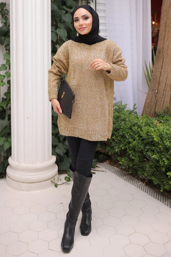 Gümüş Bisiklet Yaka Simli Triko Kazak
