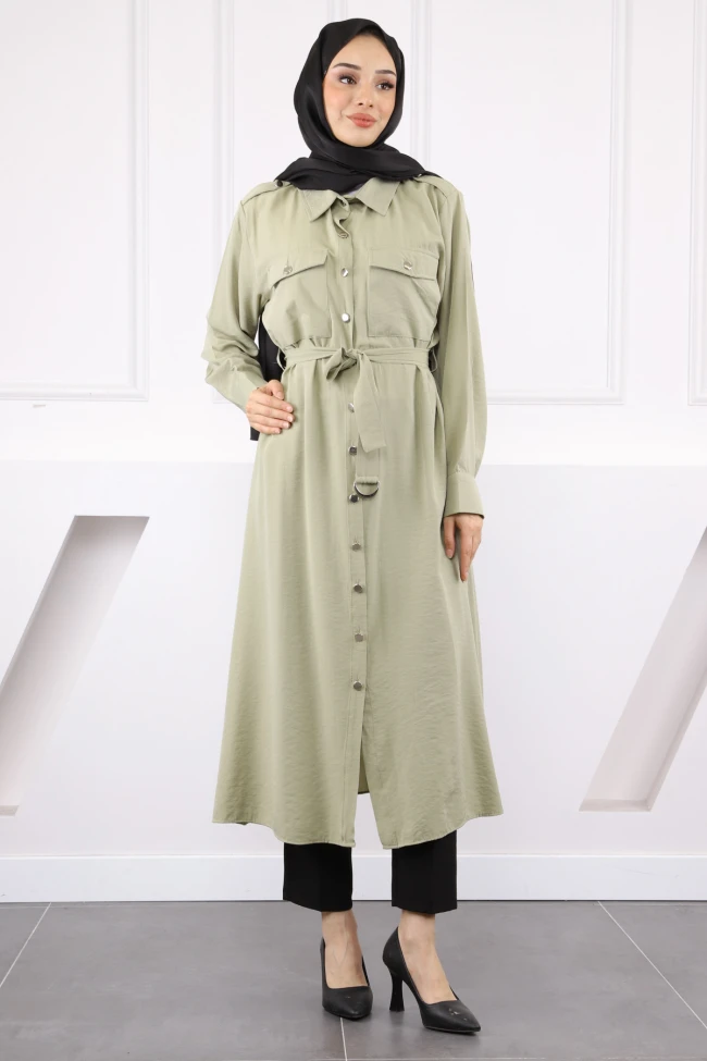 * Ürün Detay : Yeni sezona uygun Modal kumaştan üretilmiştir. Ön kısmı düğmeli ve kuşak detayı yer almaktadır.
