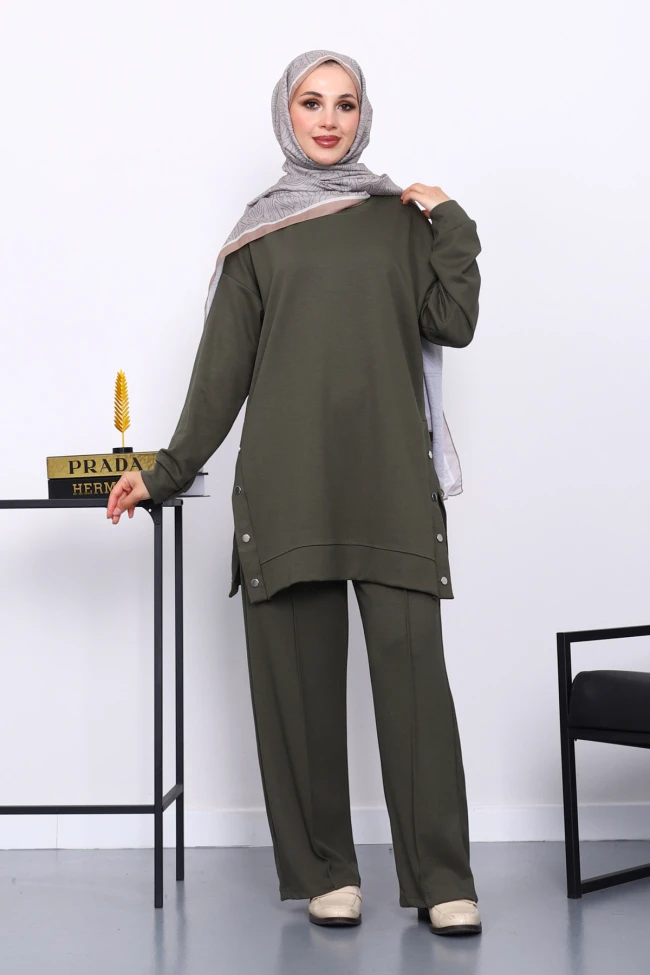 * Ürün Detay : Ürünümüz  Modal kumaştan üretilmiştir. Tunik ile Pantolon ikili takım şeklindedir. Tunik yan kısımları çıt çıt detaylıdır. Pantolon bel kısmı lastiklidir.