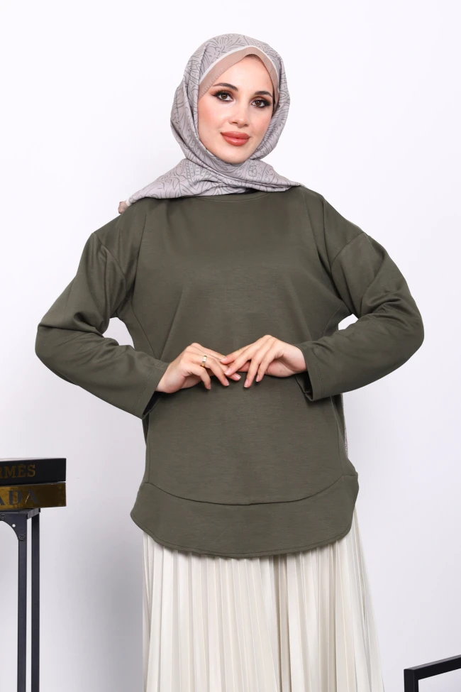 * Ürün Detay : Ürünümüz Pamuk Modal Kumaştan Üretilmiştir. Yaka kısmı bisiklet yaka olup ,etek uç kısmı oval kesim olarak tasarlanmıştır.