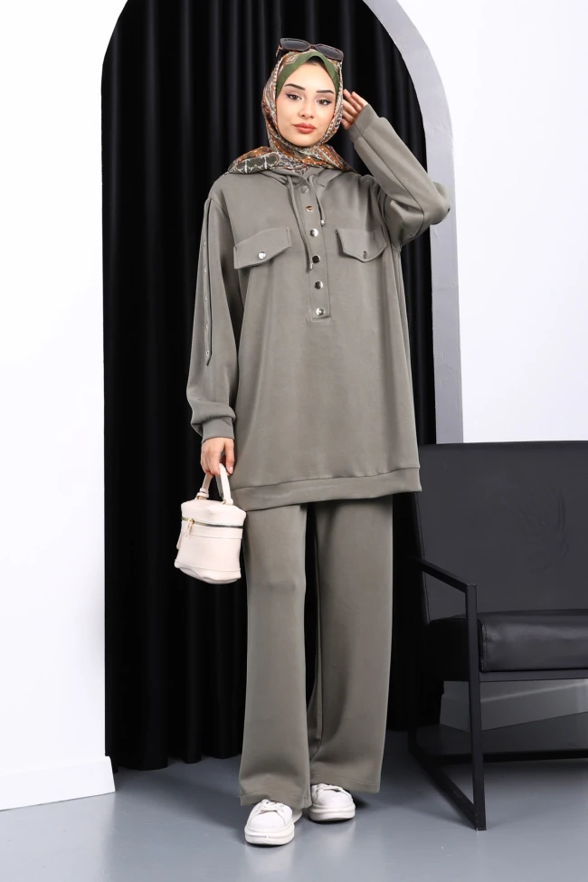 * Ürün Detay : Ürünümüz Premium Modal Kumaştan Üretilmiştir. Tunik ile Pantolon ikili takım şeklindedir. Yaka kısmı düğme detaylı olup, kapüşonlu olarak tasarlanmıştır.