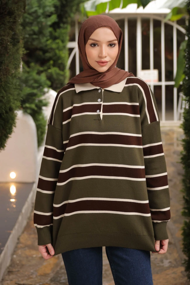 * Ürün Detay : Sezonun trend desenlerinden olan çizgi deseni kazak modelimiz ile buluşuyor.Triko kumaştan üretilmiştir. Yakalıdır ve yaka üç düğmelidir.Sadelikten vazgeçemeyenler için ideal bir seçimdir. Spor ve klasik kombinlerinizde kazak modelimiz tamamlayıcı parça olacaktır.
