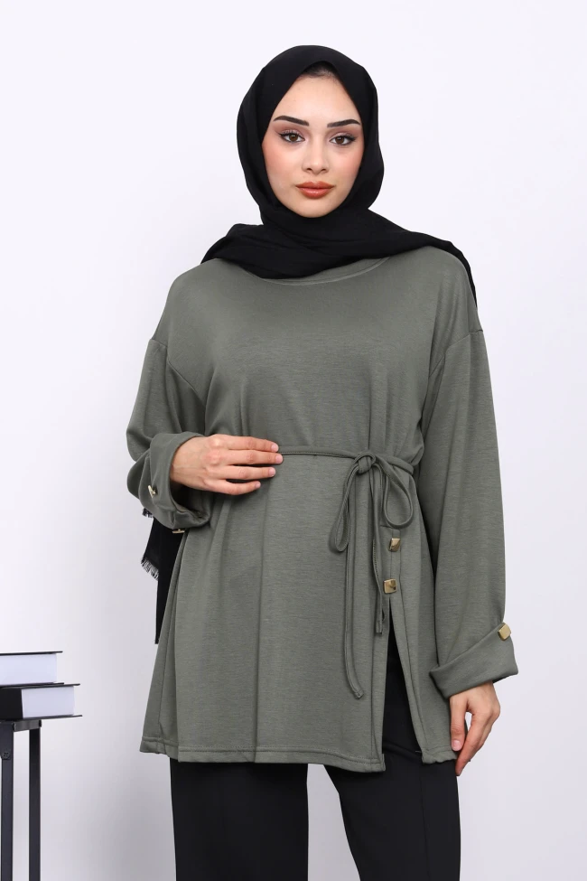 Siyah Düğme Detaylı Modal Tunik Koyuv Vizon Düğme Detaylı Modal Tunik