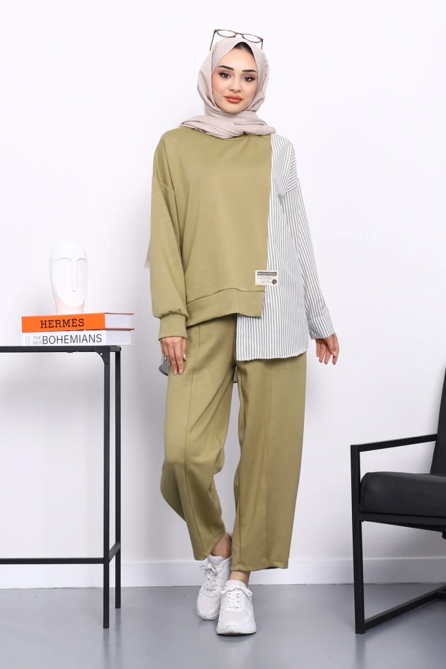 Siyah Garnili Tunik Pantolonlu Çizgili Takım Bordo Garnili Tunik Pantolonlu Çizgili Takım Bisküvi Garnili Tunik Pantolonlu Çizgili Takım