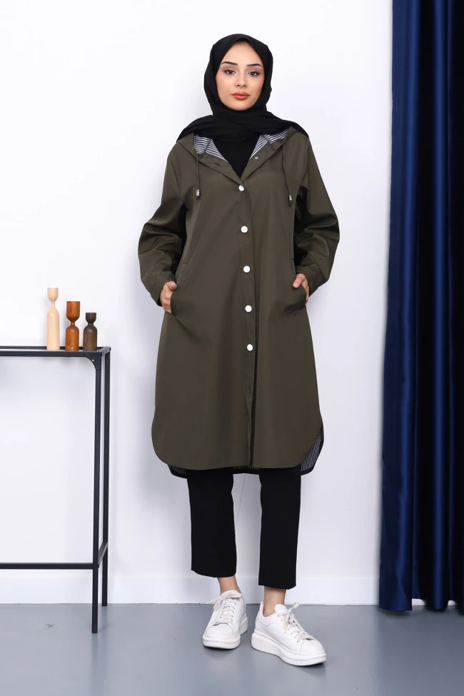 Siyah Kapşonlu Düğme Detaylı Trençkot Vizon Kapşonlu Düğme Detaylı Trençkot Lacivert Kapşonlu Düğme Detaylı Trençkot Camel Kapşonlu Düğme Detaylı Trençkot