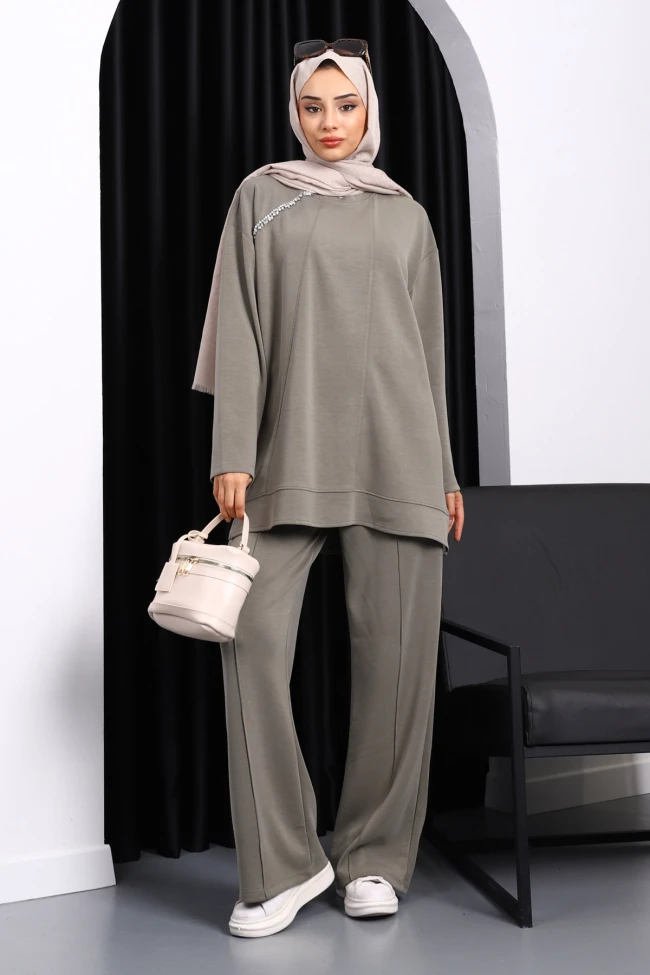 * Ürün Detay : Ürünümüz Modal kumaştan üretilmiştir. Tunik ile Pantolon ikili takım şeklindedir. Tunik omuz kısmında taş işleme detayı yer almaktadır. Pantolon bel kısmı lastiklidir.