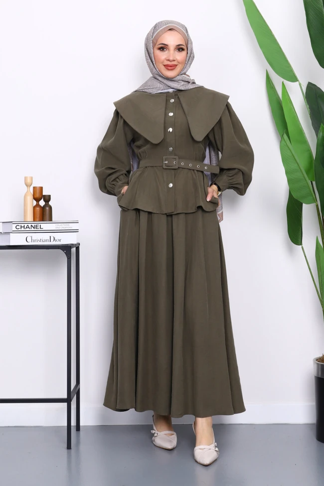 Lacivert Yaka Detaylı Gömlek Etekli Takım Kahverengi Yaka Detaylı Gömlek Etekli Takım Antrasit Yaka Detaylı Gömlek Etekli Takım Bordo Yaka Detaylı Gömlek Etekli Takım