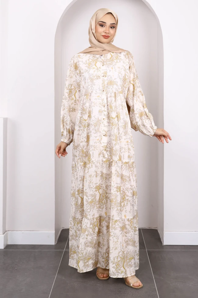 Yeşil Yarım Düğmeli Eteği Katlı Desenli Elbise Pembe Yarım Düğmeli Eteği Katlı Desenli Elbise Saks Mavi Yarım Düğmeli Eteği Katlı Desenli Elbise