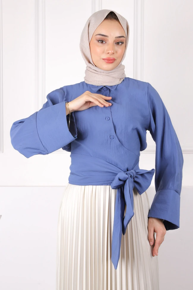 * Ürün Detay : Ürünümüz Pamuklu Modal Keten Kumaştan Üretilmiştir. Modelimiz ön kısmı düğmeli olup, yan kısma doğru bağlama detay yer almaktadır.