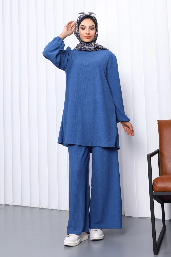 * Ürün Detay :  Ürünümüz Bürümcük kumaştan üretilmiştir. Tunik ile Pantolon ikili takım şeklindedir. Pantolon bel kısmı lastiklidir.