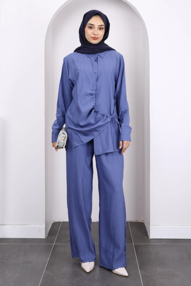 * Ürün Detay : Ürünümüz Çilek Keten kumaştan üretilmiştir. Tunik ile Pantolon ikili takım şeklindedir. Tunik ön kısmı düğmeli ve büzgü detaylıdır. Pantolon bel kısmı lastiklidir.
