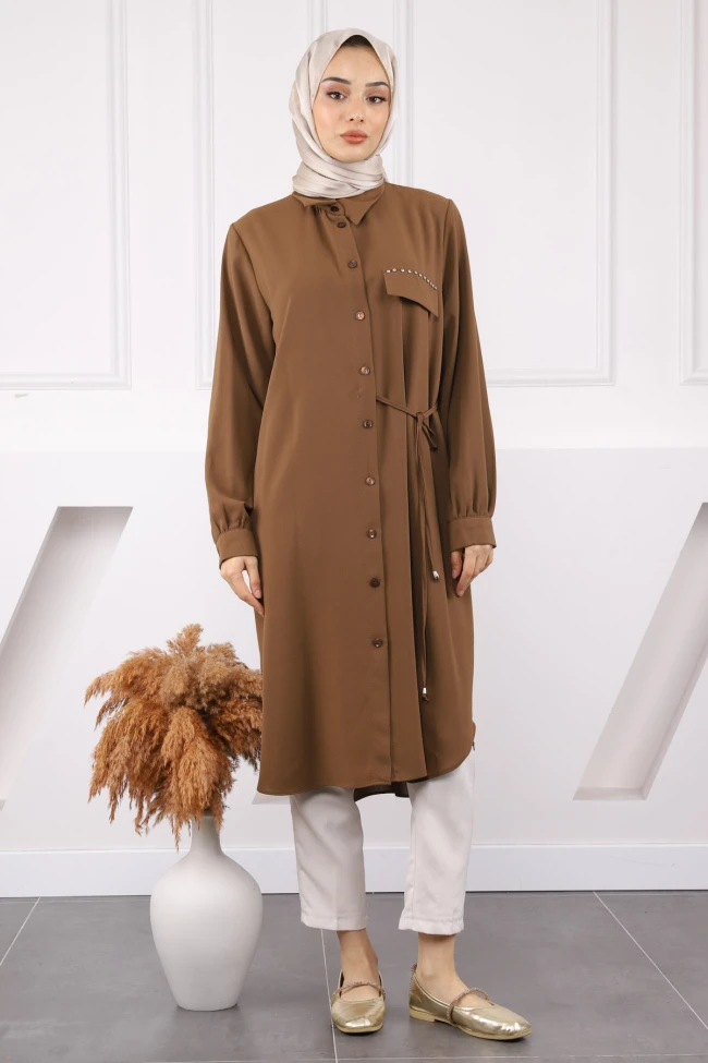 * Ürün Detay : Ürünümüz Linda Krep kumaştan üretilmiştir. Ön kısmı düğme detaylı olup, yan kısımda bağlama detayı yer alır.